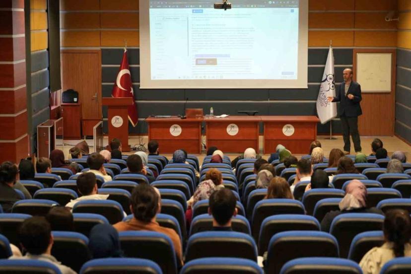 İlahiyat Fakültesi Türkistan Ahmet Yesevi Konferans Salonu’nda yapılan oturumda, İnsan ve Toplum Bilimleri Fakültesi Öğretim Üyesi Prof. Dr. Ramazan Cansoy sunum yaptı. Cansoy, akademik araştırmalarda literatür taramasının temel yöntemleri, mefhumi çerçeve oluşturma süreci ve teorilerin araştırmalarda doğru konumlandırılmasına ilişkin katılımcıları bilgilendirdi.