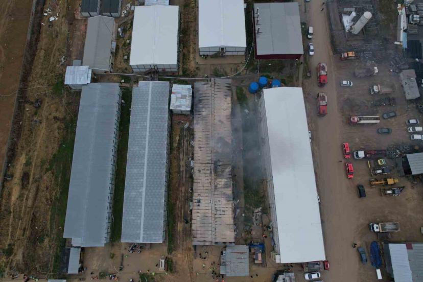 Sakarya’nın Adapazarı ilçesinde inşaatı devam eden bin yataklı şehir hastanesinde işçi yatakhanelerinin bulunduğu bölümde çık...