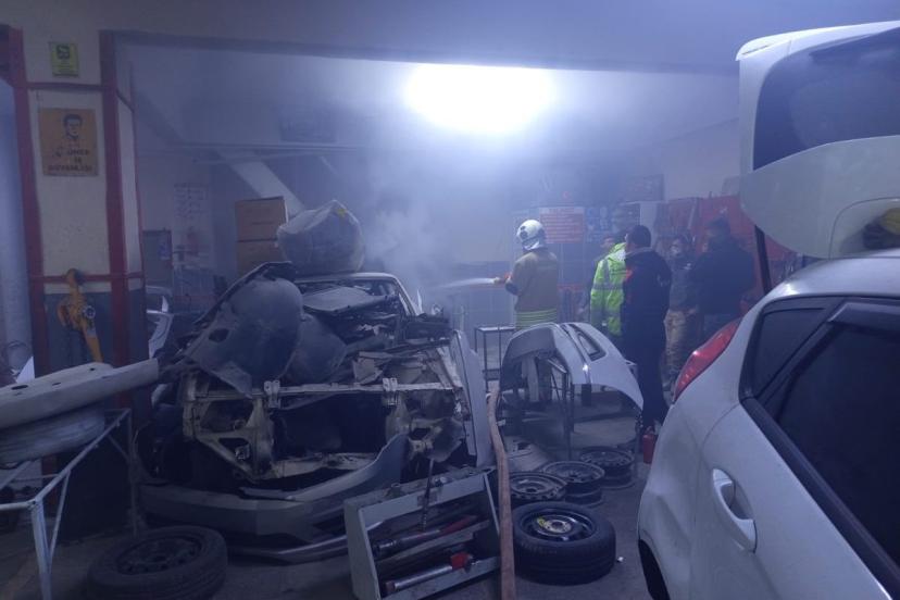 Hatay’da araç tamirhanesinde çıkan yangını itfaiye ekipleri büyümeden söndürdü.