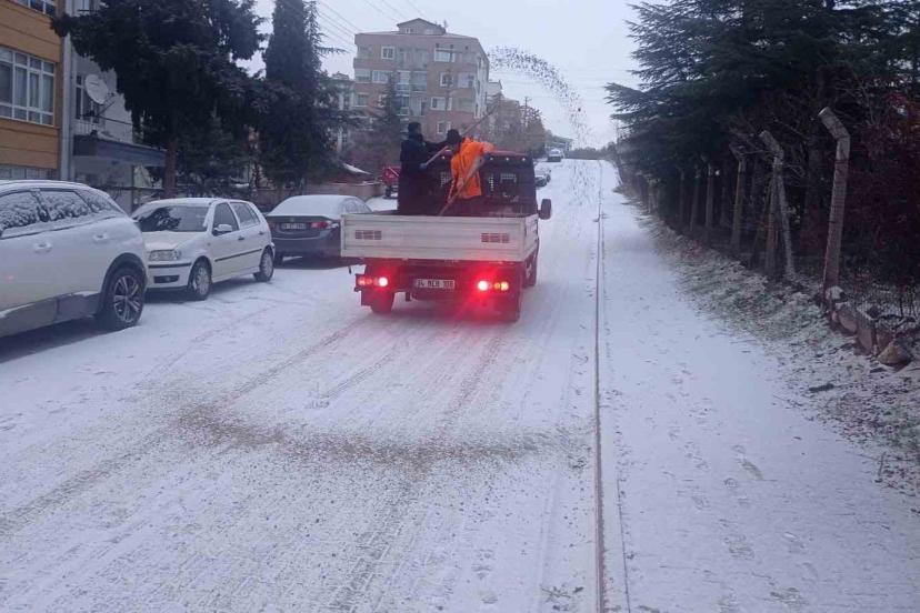 Kırıkkale Belediyesi ekipleri kar mesaisinde