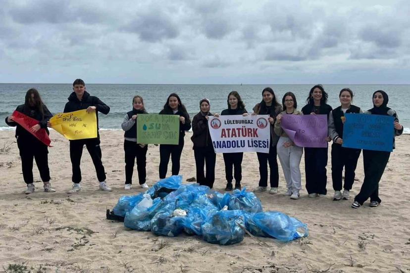 Kırklareli’nde çevreci öğrenciler sahilde temizlik yaptı