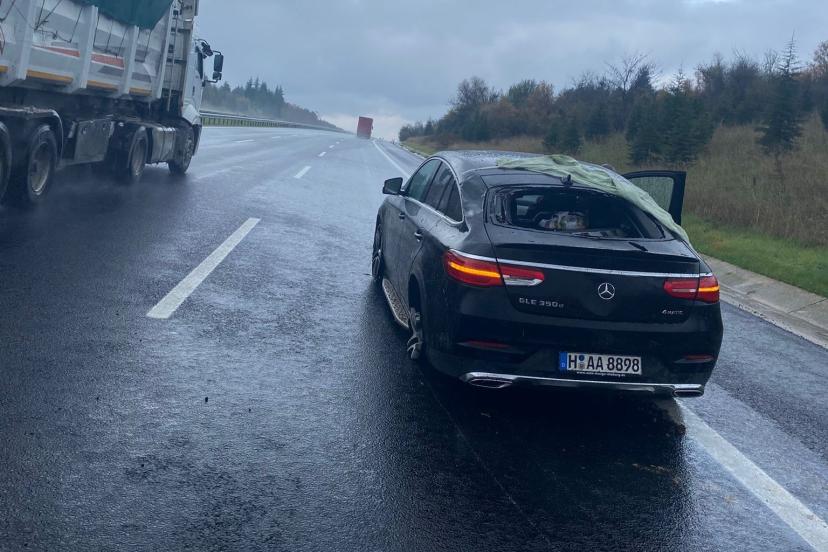 Yoğun yağışın etkili olduğu sırada, henüz sürücüsünün kimliği öğrenilemeyen Mercedes marka bir otomobil, görüş mesafesinin düşmesi sonucu önünde seyreden tıra arkadan çarparak takla attı. Kazada otomobilin ön kısmında maddi hasar meydana gelirken, olay yerine sağlık ekipleri sevk edildi. Kazada, trafik bir süre kontrollü olarak sağlandı. Kazada yaralanan kimsenin olmayışı rahat bir nefes aldırdı.