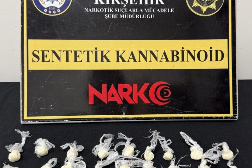 Edinilen bilgiye göre, Kırşehir İl Emniyet Müdürlüğü Narkotik Suçlarla Mücadele Şube Müdürlüğü ekiplerince yürütülen analiz çalışmaları sonucunda şehir giriş uygulama noktasında bir otomobil durduruldu. Araçta yapılan aramada 19 parça halinde toplam 15,88 gram sentetik kannabinoid hammaddesi ele geçirildi. Operasyon kapsamında araçta bulunan A.K., N.K. ve Y.K. isimli şüpheliler hakkında "Uyuşturucu ve Uyarıcı Madde Ticareti Yapmak" suçundan yasal işlem başlatıldı. Emniyetteki işlemlerinin ardından adliyeye sevk edilen şüpheliler, çıkarıldıkları mahkemece tutuklanarak cezaevine gönderildi.