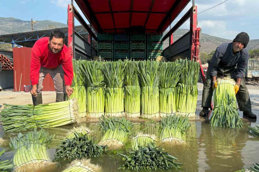 Menemen ilçesinin verimli ovalarında kış sebzesi pırasanın hasadı başladı. İzmirli üreticiler, bereketli topraklarda gerçekleştirilen hasatla ürünlerini tarladan sofralara ulaştırmanın heyecanını yaşıyor.