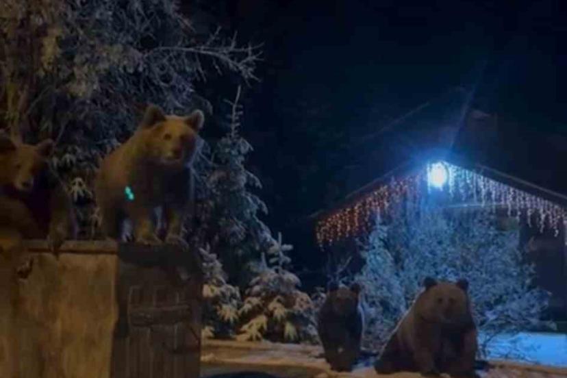 Bursa Uludağ’da yerleşim alanlarına inen ayılar, çöp konteynerlerinin üzerinde dolaştı. Çöp konteynerini karıştıran 1 anne ve 3 yavru ayının, bölgede kar yağmasına rağmen hala kış uykusuna yatmamaları dikkat çekti.