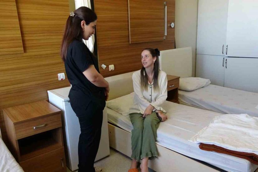 10 gün önce doğum yaptığını dile getiren İkra Çakır ise "Erken doğum yaptım bu yüzden bebeğim kuvözde kaldı. O süreç devam ediyor. Anne oteli çalışanlarının ilgisi çok iyi, bu yüzden çok memnun kaldık. Uzakta yaşadığımız için burada kaldık" şeklinde konuştu.