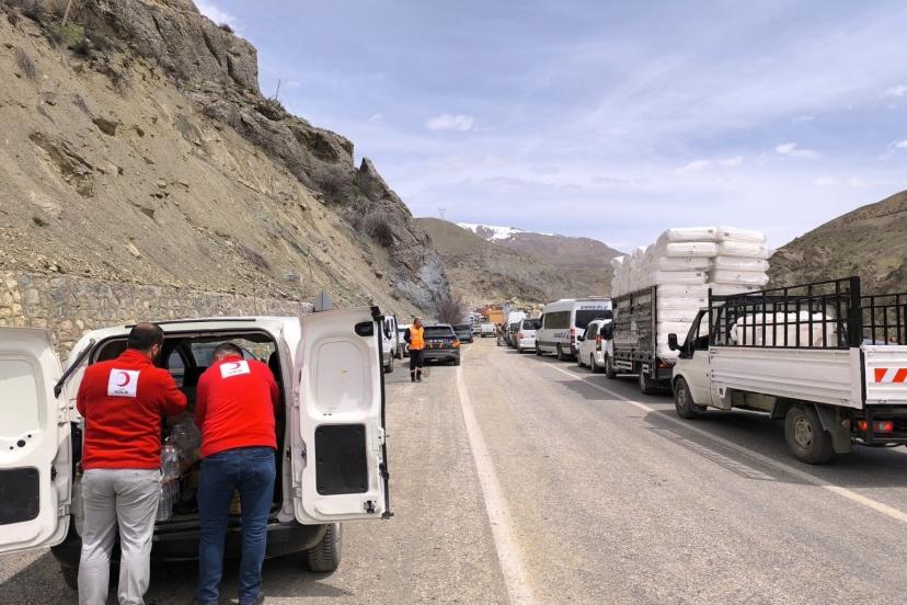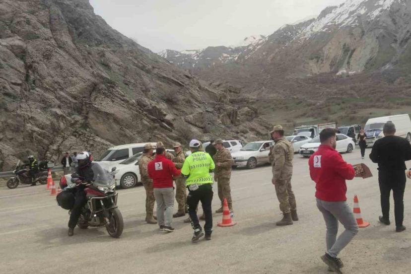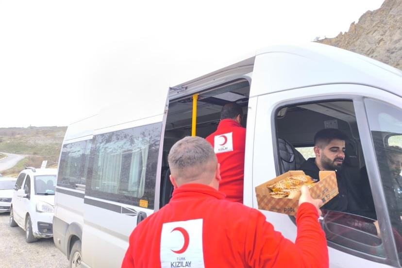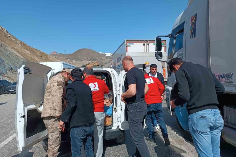 Hakkari-Van kara yolunda meydana gelen heyelan nedeniyle ulaşımın durduğu bölgede yolda mahsur kalan vatandaşlara Türk Kızılay tarafından kumanya desteği sağlandı.