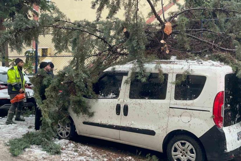 Kökünden sökülen ağaç park halindeki aracın üzerine devrildi