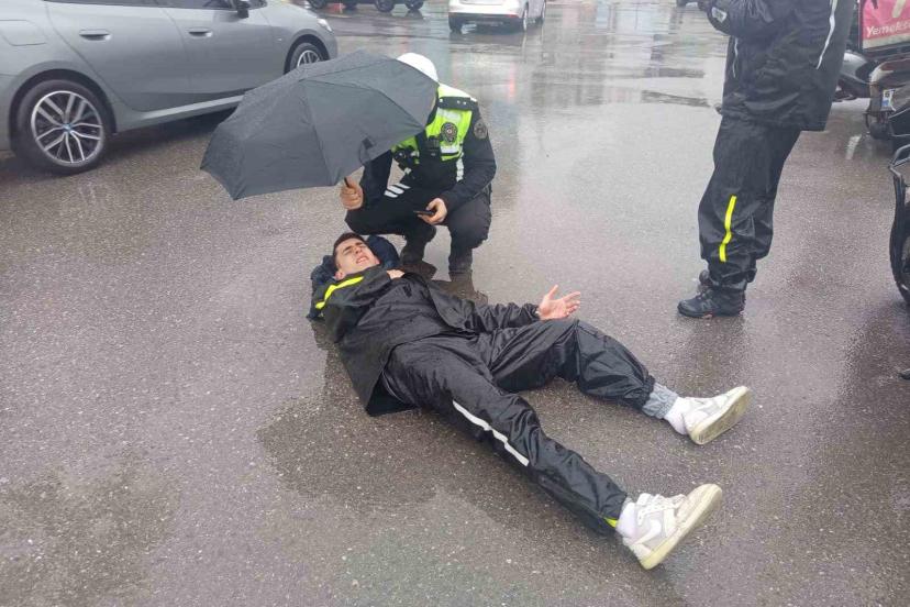 Yaralı kuryeye ilk müdahaleyi çevredeki vatandaşlar yaparken, olay yerine gelen Ereğli İlçe Emniyet Müdürlüğü’ne bağlı trafik tescil komiseri örnek bir davranış sergiledi. Komiser, yaralı kuryenin başında 112 Acil Sağlık ekipleri gelinceye kadar şemsiye tutarak bekledi.