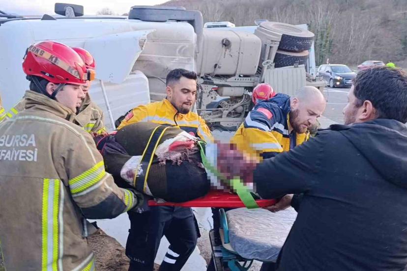 Bursa’nın İnegöl ilçesinde kontrolden çıkan beton tankerinin devrildiği kazada sürücü ağır yaralandı.