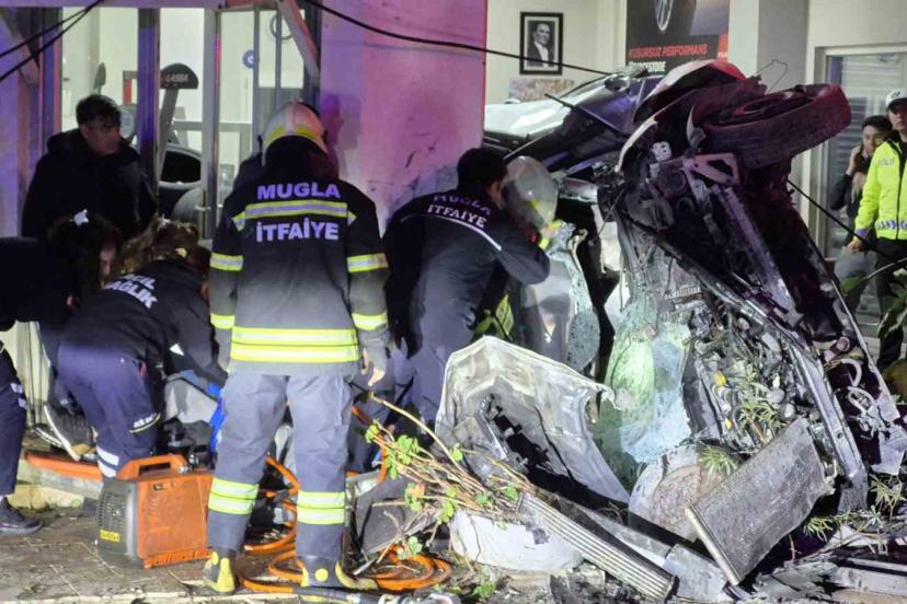 Muğla’nın Bodrum ilçesinde kontrolden çıkıp bir iş yerine giren otomobildeki 3 kişi sıkışarak yaralanırken, yaralılar uzun uğraşlar sonucu kurtarılarak hastaneye kaldırıldı.