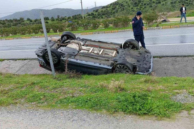 Aydın-Muğla Karayolu üzerinde yağış sebebiyle kayganlaşan yolda kontrolden çıkan otomobil ters döndü, kazada 1 kişi yaralandı.