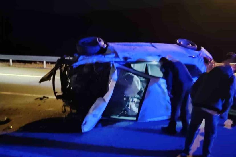 Kayseri’nin Bünyan ilçesinde kontrolden çıkan otomobil yan yattı.