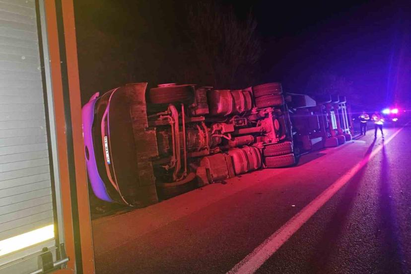 Kontrolden çıkan tır devrildi, şans eseri yaralanan olmadı