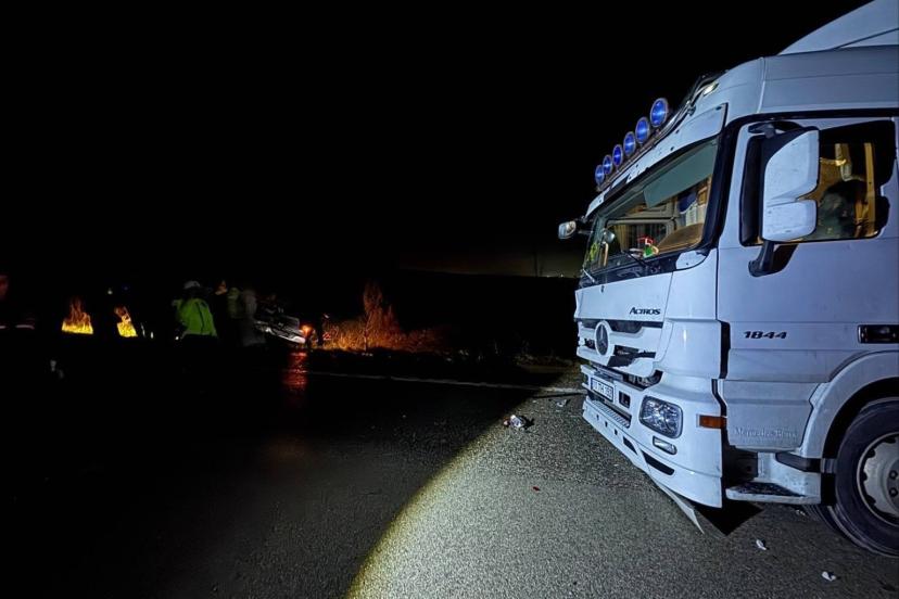 Bursa’nın Mustafakemalpaşa ilçesinde otoyolda köpeklere çarpıp durmak zorunda kalan otomobile ve yardım etmek için duran 2 farklı araca tır çarptı.