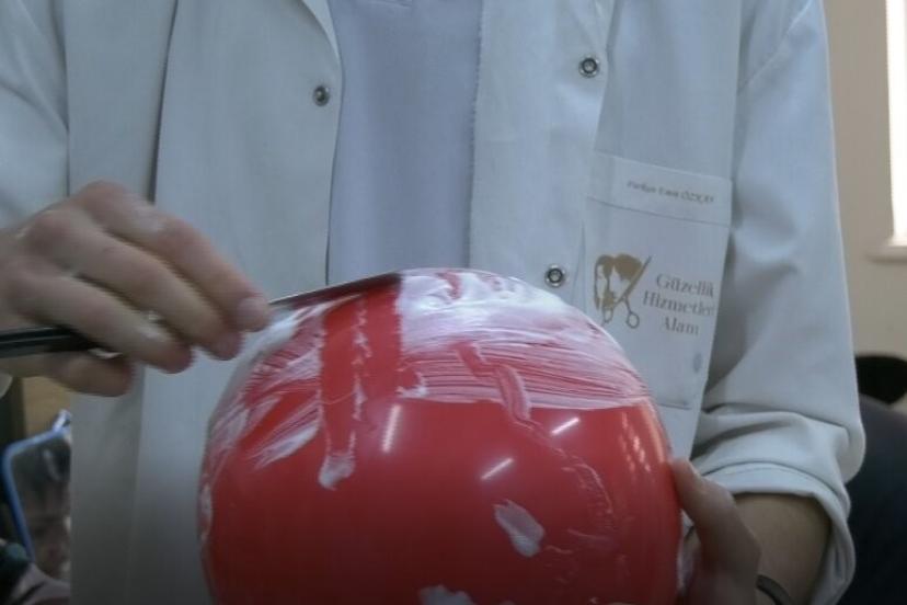 Bursa’daki meslek ve teknik anadolu lisesi öğrencileri hem eğitimlerini tamamlıyor, hem de meslek sahibi olup bir yandan da para kazanabiliyorlar. Gerçek müşteriyi tıraş edebilmek için Osmanlı döneminde kullanılan yöntem deneniyor.Şişirilen balona köpük sürülüyor. Öğrenciler jilet kullanarak köpüklü balonu patlatmazlarsa başarılı oluyorlar.