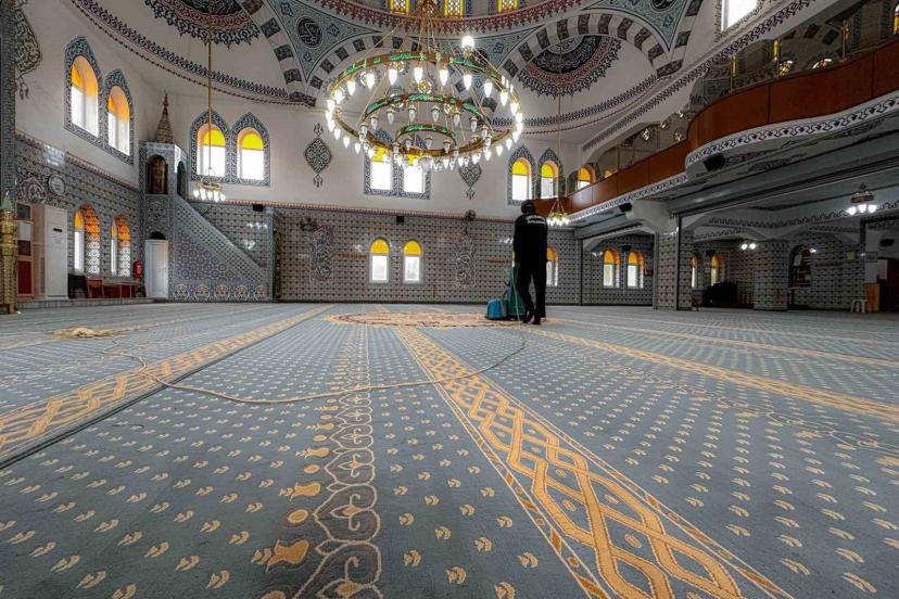 Ekipler ayrıca kapı, pencere ve ayakkabılık gibi ortak kullanım alanları da özenle temizlerken, şadırvanlar ve lavabolar da dezenfekte ediliyor.