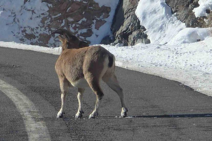 Gez Köyü yakınlarında tek başına dolaşan dağ keçisi ise aracın yaklaşmasıyla birlikte koşarak dağa doğru ilerledi ve kısa sürede gözden kayboldu.