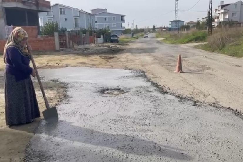 Tekirdağ’ın Marmaraereğlisi ilçesine bağlı Yeniçiftlik Mahallesi Erguvan Çiçeği Caddesi’nde yaşayan Emine Öztekin, evlerin bulunduğu bölgedeki bozuk yolu kendi imkanlarıyla onardı. Arabaların çukurlara girdiğini, yol yüzünden sürekli sorun yaşandığını belirten Öztekin, "Burası yol ama her yer köstebek yuvası gibi, arabalar çukura düşüyor. Cebimden para verdim, beton attım. Belediyenin yapacağı işi ben yapıyorum, böyle bir şey olur mu? Yol yok, su yok, elektrik yok. Her yer ev ama bunlar yok. Lütfen buraya bir çare istiyoruz, böyle olmaz" ifadelerini kullandı.