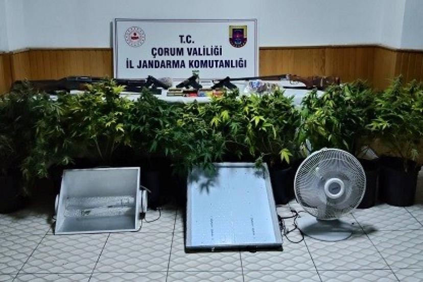 Edinilen bilgiye göre, Çorum İl Jandarma Komutanlığı ekipleri tarafından, Bayat ilçesine bağlı köyde ikamet eden bir şahsın evinin içine özel düzenek kurarak uyuşturucu madde yetiştirdiği edildi. Jandarma ekiplerince belirlenen adrese düzenlenen baskında, kurduğu çadırda skunk bitkisi yetiştirdiği tespit edildi. Evde yapılan aramalarda, 2 adet iklimlendirme çadırı, 2 adet iklimlendirme lambası, 1 adet termometre, 276 gram skunk maddesi, 10 kök skunk bitkisi ve 2 adet uyuşturucu kullanma aparatı, 1 adet ruhsatsız tabanca, 193 adet fişek, 2 adet kurusıkı tabanca ve 3 adet ruhsatsız av tüfeği ele geçirildi.