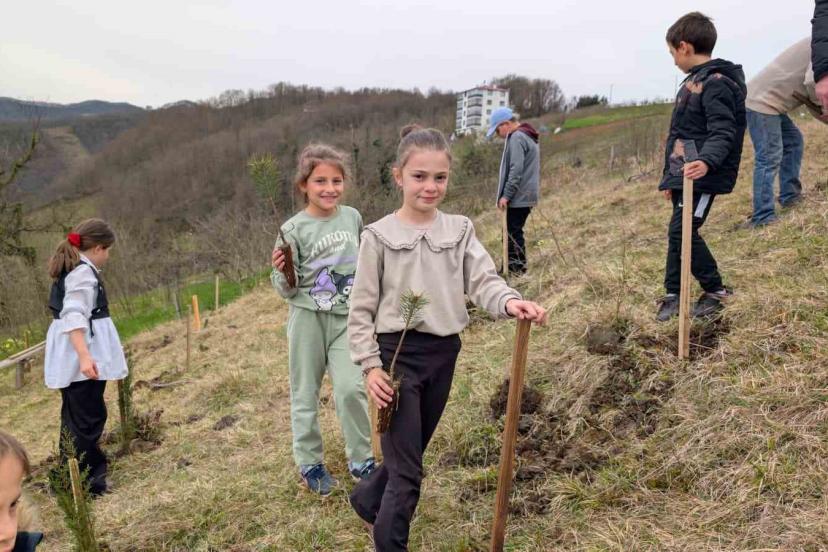 Trabzon’un Akçaabat ilçesinde yer alan Meşeli İlkokulu ve Ortaokulu öğrencileri, anlamlı bir etkinliğe imza atarak köylerine bir hatıra ormanı kazandırdı.