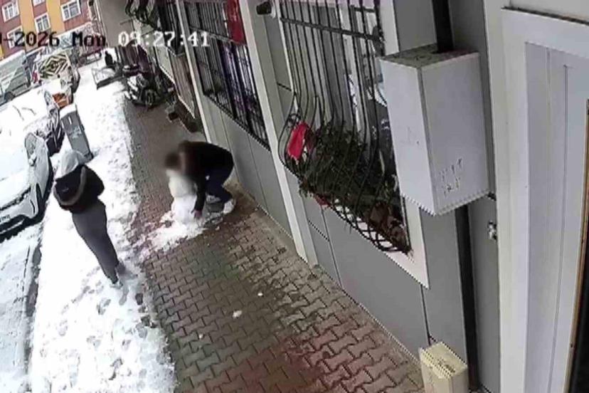 Küçükçekmece’de bir kişi, çocukların yaptığı kardan adamı alıp götürdü. Şahsın yerinden oynattığı kardan adamın bir kısmı dağılırken, o anlar güvenlik kamerasına böyle yansıdı.