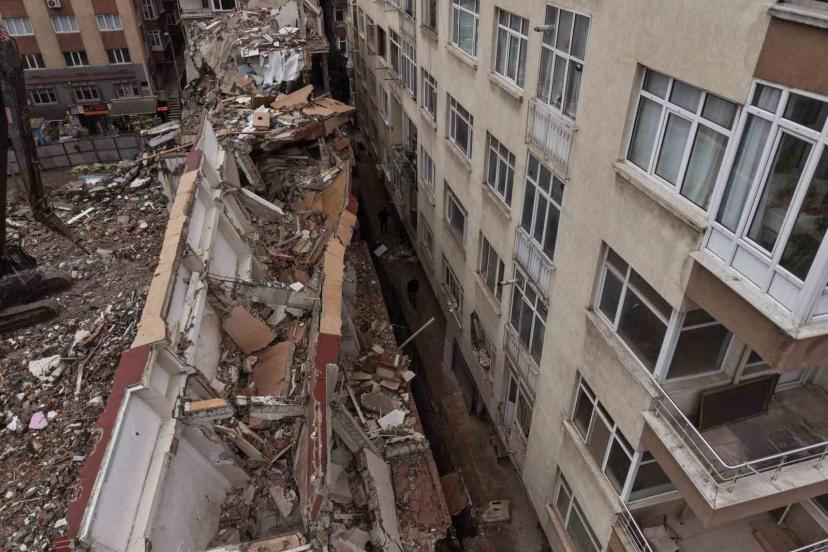 İstanbul Küçükçekmece’de kentsel dönüşüm kapsamında iş makinesi ile yıkımı yapılan binadan kopan parçalar yan binanın üzerine devrildi.