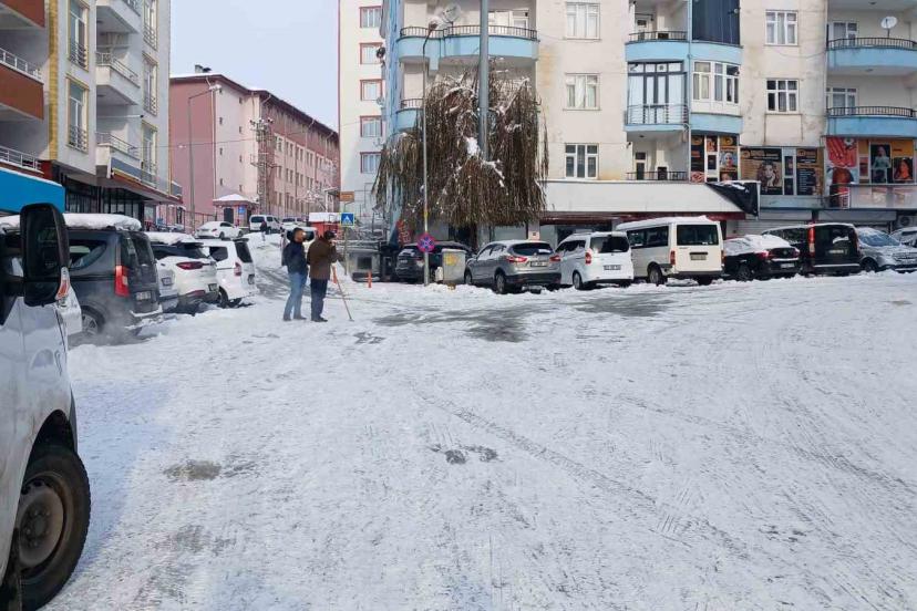 Kar yağışı sonrası soğukların etkili olmaya devam ettiği ilçede, gün içinde güneş açmasına rağmen buzlanma yer yer sürdü.