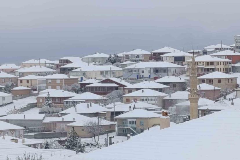 Konya’nın Kulu ilçesinde mevsimin ilk kar yağışı sonrası ilçe beyaza büründü.