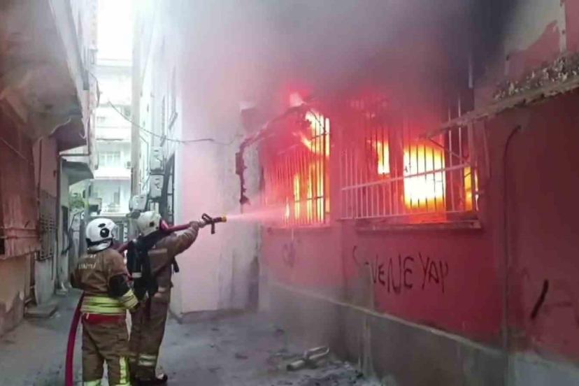 Hatay’da bir apartmanın giriş katında bulunan kumaş deposu alevlere teslim olarak yandı. Alevler, itfaiye ekiplerinin müdahalesiyle apartmanı sarmadan söndürüldü.