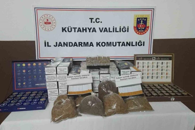 Kütahya İl Jandarma Komutanlığı unsurlarınca il genelinde kaçakçılık suçları kapsamında yapılan çalışmalar neticesinde, Pazarlar ilçe merkezinde bulunan bir iş yeri ve araçta yapılan aramada, 16 bin 440 adet içi doldurulmuş bandrolsüz makaron, 400 adet bandrolsüz makaron, 63 paket bandrolsüz nargile tütünü, 3 bin 750 gram kıyılmış bandrolsüz tütün ele geçirilmiştir.