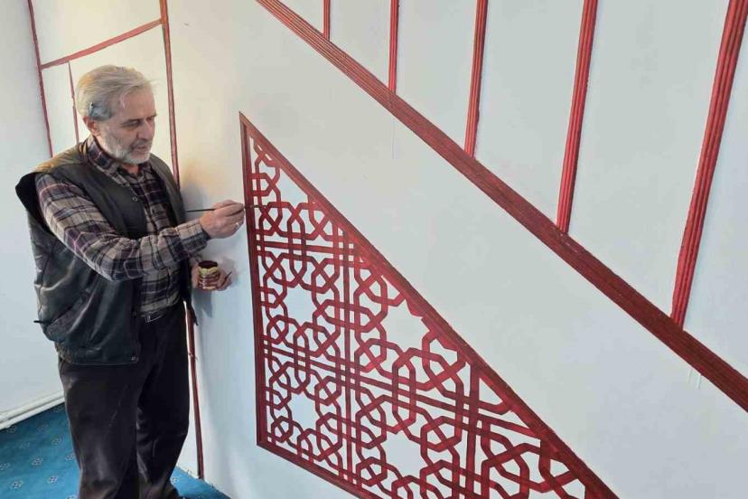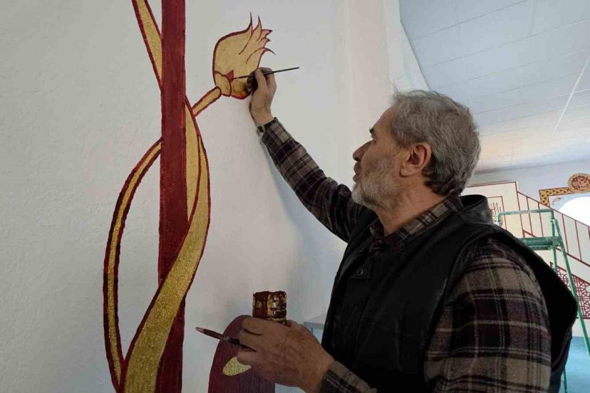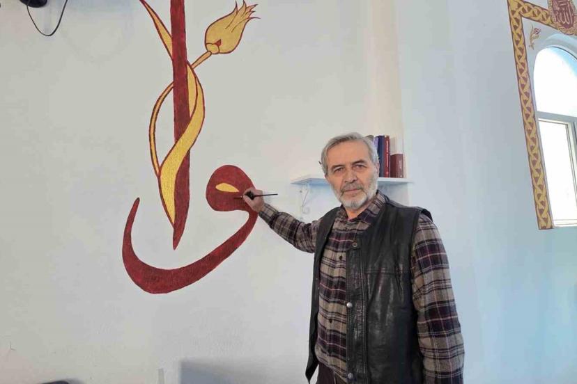 Kütahyalı imam görev yaptığı camileri hat ve nakkaş sanatı ile süslüyor