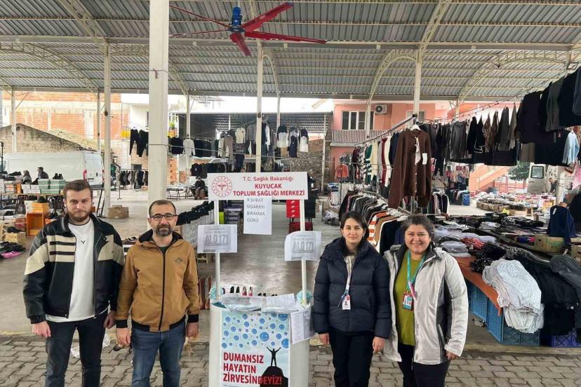 Kuyucak Toplum Sağlığı Merkezi ekiplerince kurulan stantta, pazaryerini ziyaret eden vatandaşlara sigaranın zararları anlatılarak sigara bırakma sürecinde sunulan sağlık hizmetleri hakkında bilgi verildi. Vatandaşlara sigara bırakma polikliniklerinin işleyişi aktarılırken, Alo 171 Sigara Bırakma Danışma Hattı hakkında da bilgilendirme yapıldı. Etkinlik kapsamında sigaranın birey ve toplum sağlığı üzerindeki olumsuz etkilerine dikkat çekilirken, sigarayı bırakmak isteyen vatandaşların profesyonel destek alabilecekleri kanallar konusunda farkındalık artırıldı.
