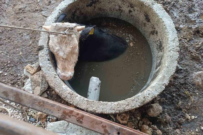 Hatay’ın Altınözü ilçesinde kuyuya düşüp mahsur kalan inek, itfaiye ekipleri tarafından kurtarıldı.