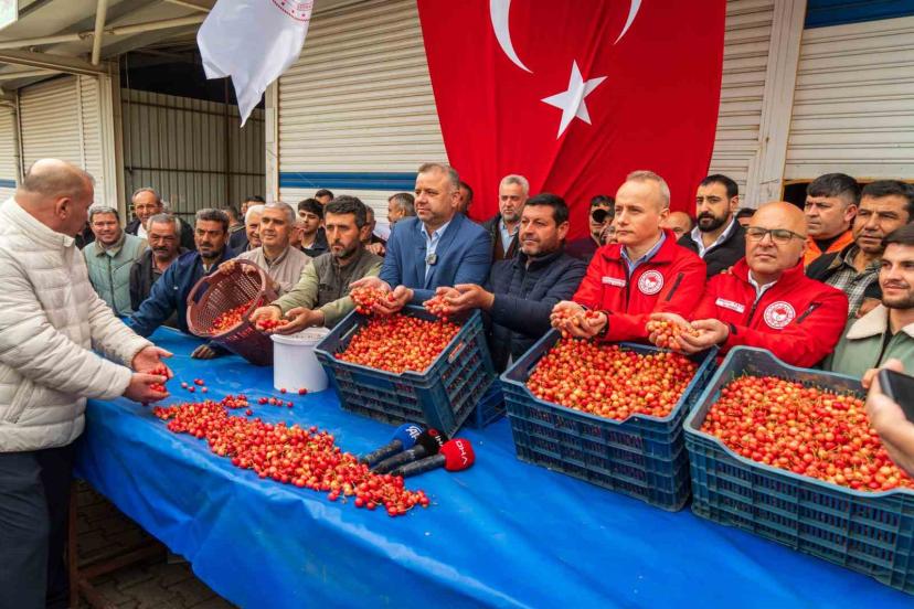 Manisa’nın Şehzadeler ilçesinde erkenci kiraz cinsleri kuzey yarımkürede yetişen ilk kiraz olma özelliğiyle gerek yurt içi gerekse de yurtdışı pazarda önemli bir yere sahip. Nisan ayının sonlarına doğru gelirken, çiftçiler de hasat edilen ilk kirazı pazara yetiştirmek için tatlı bir telaşa girdi. Bu yıl pazara kirazı ilk getiren kiraz üreticisi Yusuf Bakan, düzenlenen açık arttırmayla hasat ettiği kirazı kilogramı 6 bin TL’den kiraz tüccarı Mesut Altıok’a sattı.