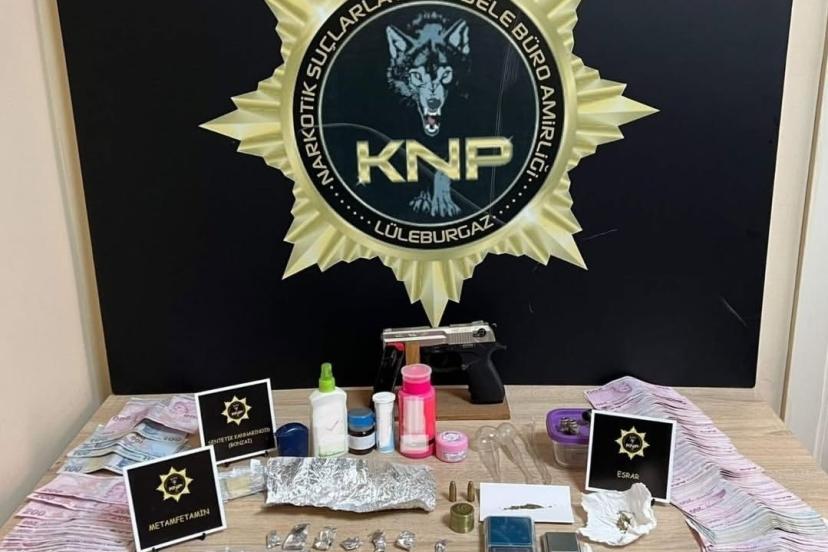 İl Emniyet Müdürlüğü Narkotik Suçlarla Mücadele Şube Müdürlüğü ekiplerince uyuşturucu madde imal ve ticareti yapan şahıslara yönelik Lüleburgaz ilçesinde eş zamanlı operasyon düzenlendi. Operasyonda 12,61 gram metamfetamin, 130,98 gram sıvı sentetik kannabinoid (yaklaşık 3 kilo 994 gram sentetik kannabinoid elde edilebileceği değerlendirilen), 15,83 gram sentetik kannabinoid, 0,93 gram skunk ve 0,11 gram esrar ele geçirildi. Operasyonda ayrıca 3 adet hassas terazi, 1 adet grinder, suçtan elde edildiği değerlendirilen 42 bin 675 TL ile 5 euro, 1 adet tabanca, 2 adet tabanca fişeği ve 4 adet payp ele geçirildi.