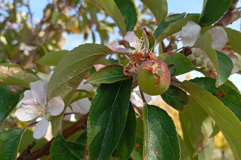 Malatya’da elma ağacı çiçek açıp meyve verdi