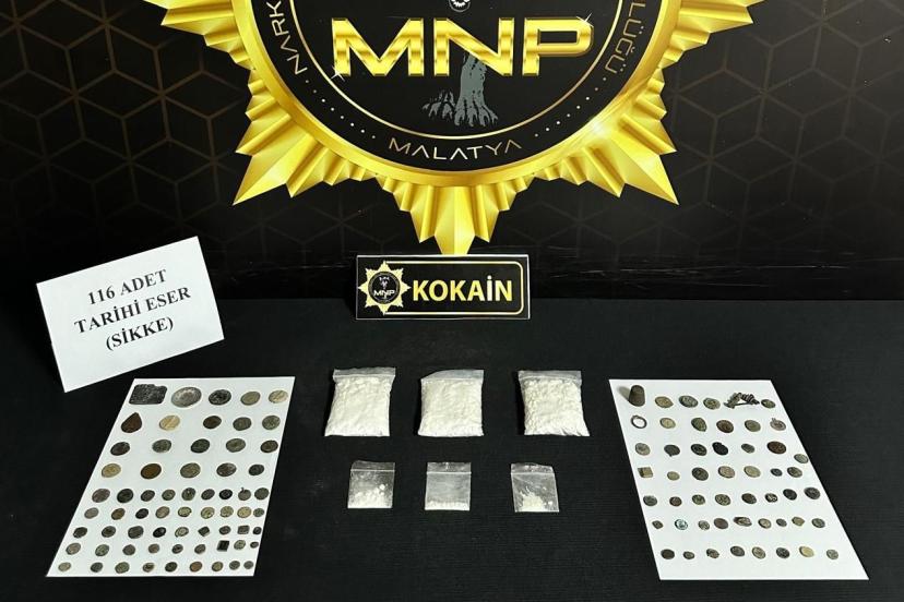 Malatya’da, İl Emniyet Müdürlüğü Narkotik Suçlarla Mücadele Şube Müdürlüğü ekipleri tarafından sokak satıcılarına yönelik fiziki takipli operasyon gerçekleştirildi. Bir iş yerinde ve bir şüphelinin üzerinde yapılan aramalarda 167 gram kokain ile 116 adet tarihi eser niteliğinde sikke ele geçirildi. Operasyonda gözaltına alınan Y.E.Y., çıkarıldığı mahkemece tutuklanarak cezaevine gönderildi.