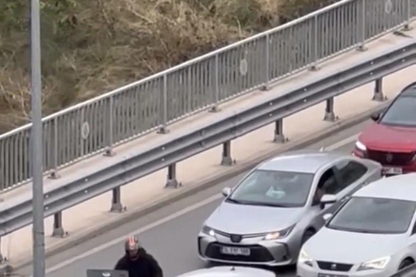 Yaşanan anlar çevredeki bir vatandaş tarafından cep telefonu kamerasıyla kaydedildi. Görüntülerde sürücülerin tartıştığı, bir kişinin sopayla saldırdığı ve tarafların çevredekiler tarafından güçlükle ayrıldığı anlar yer aldı.