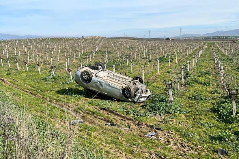Manisa’da takla atan otomobil, üzüm bağına uçtu