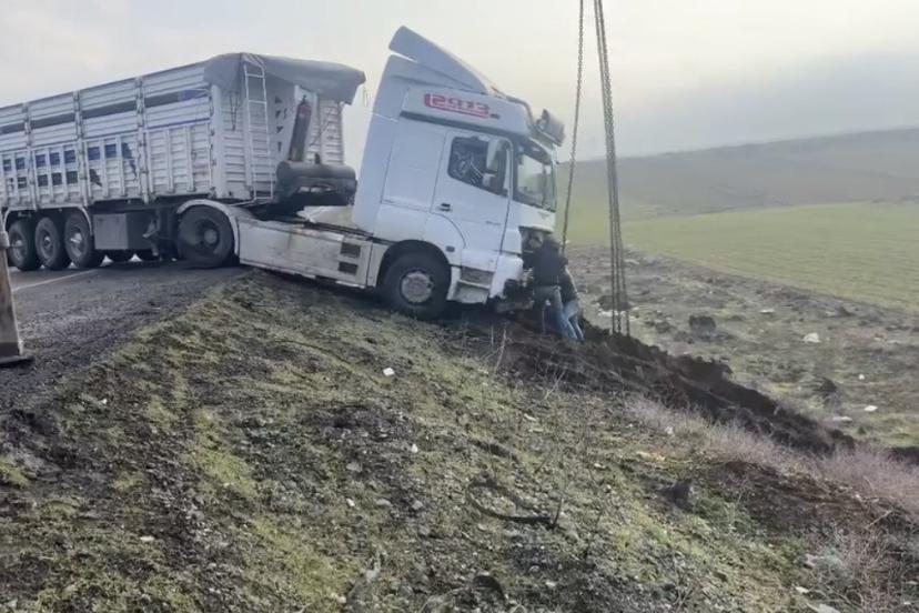 Mardin’de kontrolden çıkan tır yol kenarına savruldu