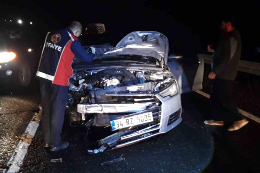 Kazanın etkisiyle at telef olurken, otomobilde maddi hasar meydana geldi.