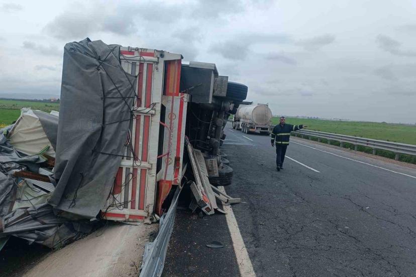 Mardin’de sürücüsünün kontrolünden çıkan tır bariyerlere çarptı