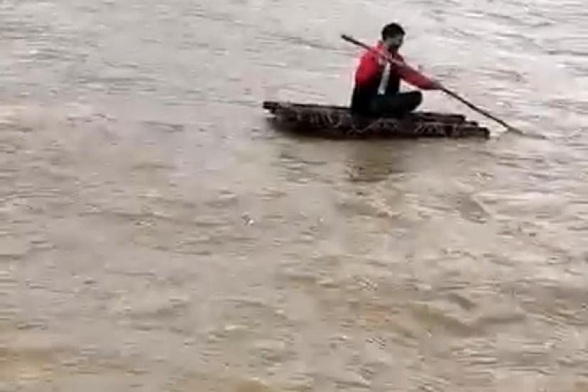 Mardin’de yağış sonrası suyla dolan deredeki sal keyfi cep telefonu kamerasına yansıdı.