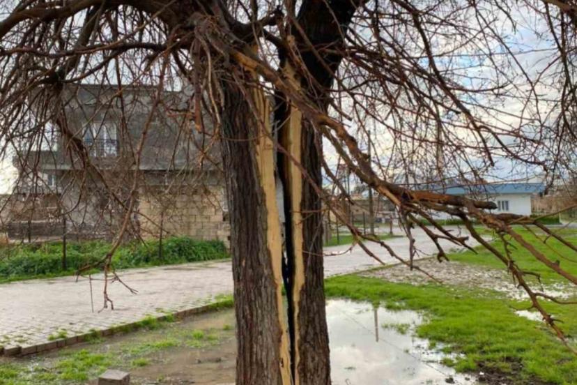 Mardin’de yıldırımın isabet ettiği ağaç ikiye bölündü