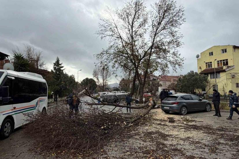 Marmaris’te dün sabah saatlerinden bu yana devam eden fırtınanın ve bugün başlayan sağanak yağmurun yol açtığı olumsuzluklara karşı ilçedeki tüm ekipler teyakkuz halinde çalışmalarını sürdürüyor. Marmaris Orman İşletme Müdürlüğü’ne bağlı ekipler, yollara devrilen ve kırılan ağaçları temizlerken, belediye ekipleri ise çöp ve çevre temizliği çalışmalarını aralıksız sürdürüyor.