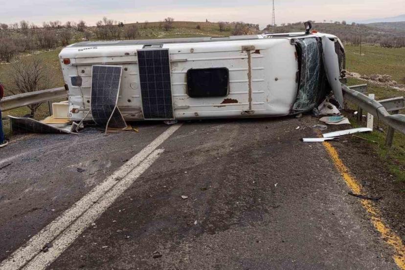 Mardin’in Mazıdağı ile Derik ilçeleri arasındaki karayolunda meydana gelen trafik kazasında bir minibüs kontrolden çıkarak devrilip yan yattı.