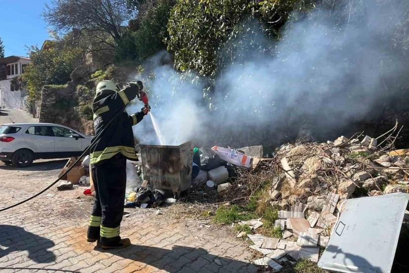 Menteşe’de çöp konteynerinde yangın paniği