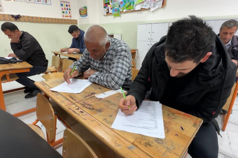 Hakkari’nin Yüksekova ilçesinde yıllardır tarlada ve merada ter döken eller, bu kez kalem tutarak sınav kağıtlarını doldurdu.