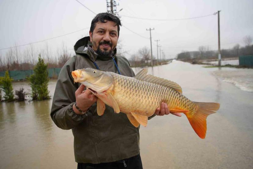Meriç Nehri’nin taşmasıyla bazı vatandaşlar tarlasında canlı sazan balığı yakaladı